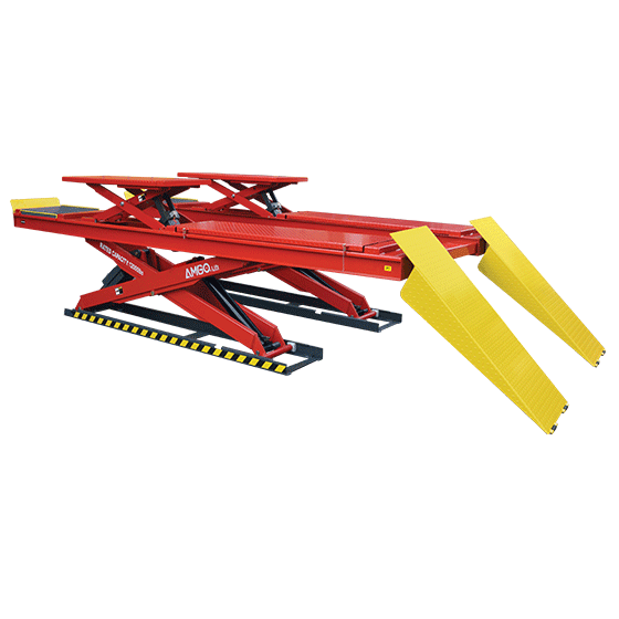 Extendable platforms of auxiliary scissors, are adjustable to accomodate various wheelbases.