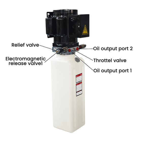 Equipped with dual electromagnetic release valves, this 220V design is the perfect power solution to drive any lifts with dual groups of oil circuilts.