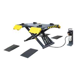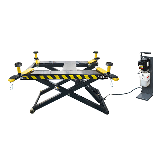 - Dual hydraulic cylinders and solid platform structure provides maximum strength and stability