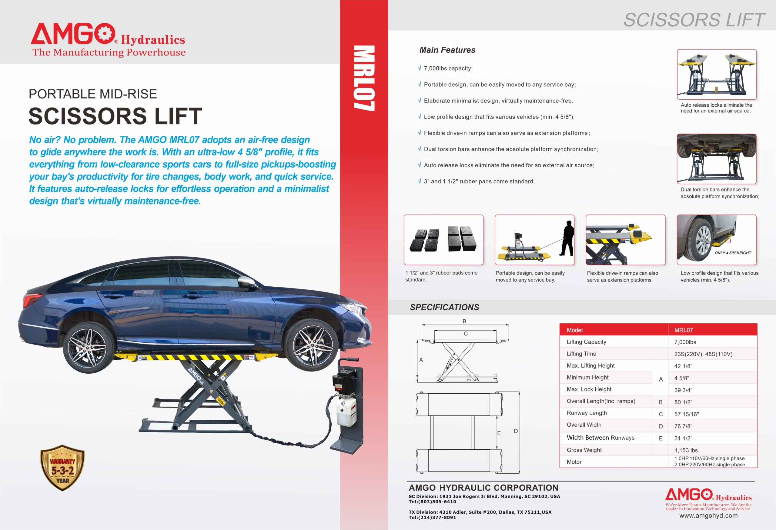 - 7,000lbs capacity;