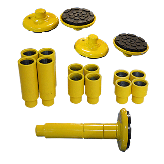The stackable rubber pads assembly with 1.5", 2.5", 5" extension adapters.
