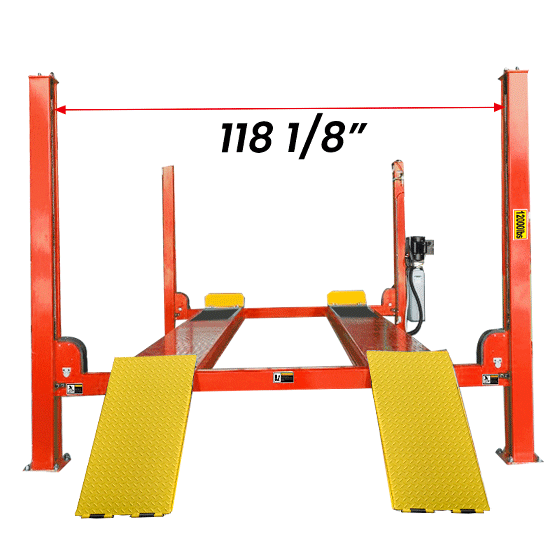 • 12,000 lbs capacity, extremely wide design with a width over 118″ between columns;