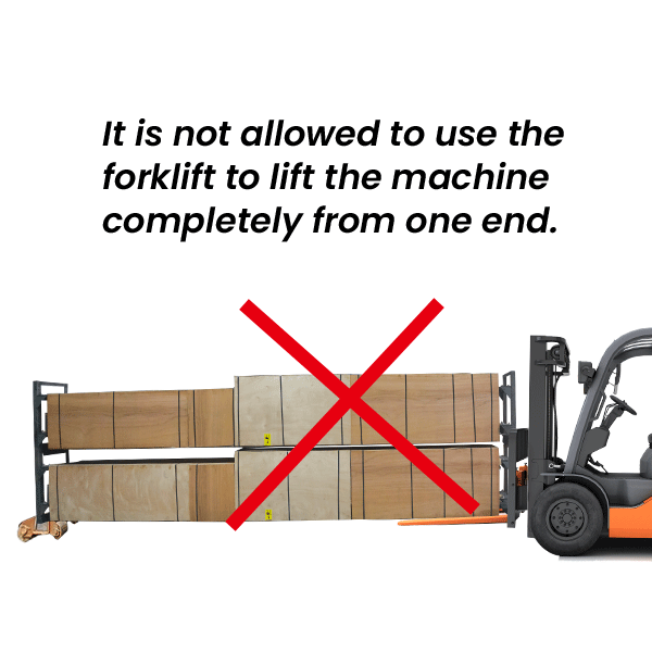 It is not allowed to use the forklift to lift the machine completely from one end, which will easily cause the machine to be deformation.