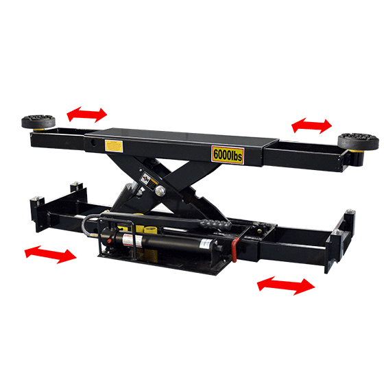 The long-reach arm and lower sliding assembly are fully adjustable to accommodate virtually any 4-post or scissor lift.