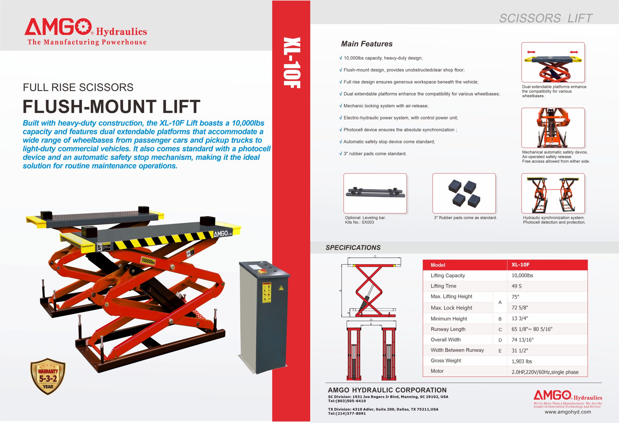 • 10,000lbs capacity, heavy-duty design;
