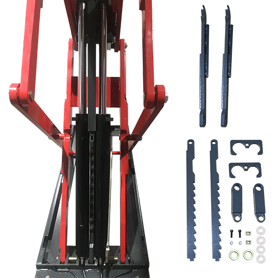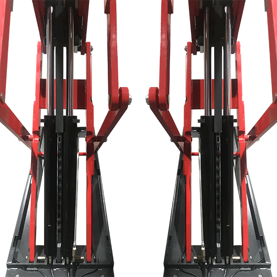 Dual groups of total 4 hydraulic cylinders ensure platforms equalization..